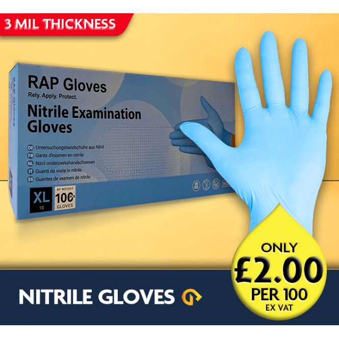 RAP - Blue Nitrile Gloves - Powder Free