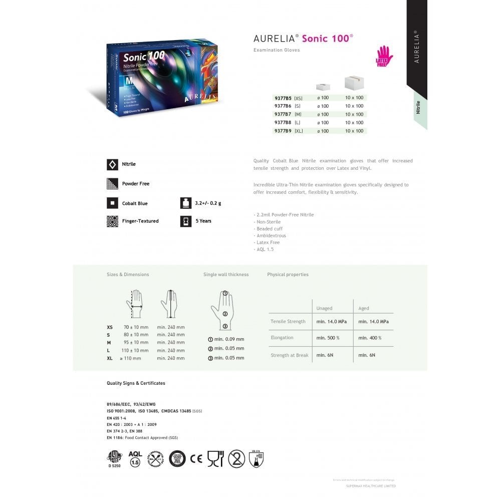 Aurelia Gloves - Sonic 100 - Cobalt Blue Nitrile Gloves - Powder Free Bundle